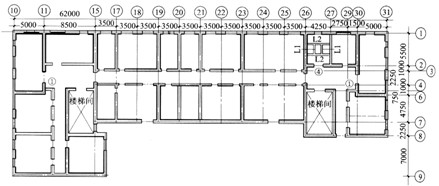 在加固的同時,還要將其改造具有現(xiàn)代設施(如中央空調(diào)、先進的電信系統(tǒng)等)的辦公用樓。增設風機房處荷載較大,需對相關的樓板及梁進行加固;墻上開洞多且不規(guī)則,結構上需進行處理。